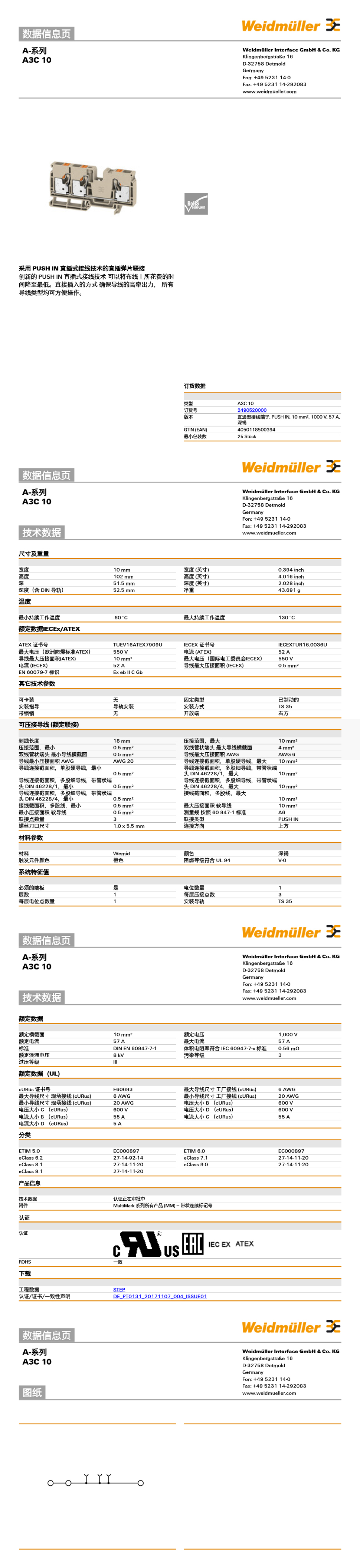 魏德米勒 > A系列 > A系列 A直插式接地型接线端子